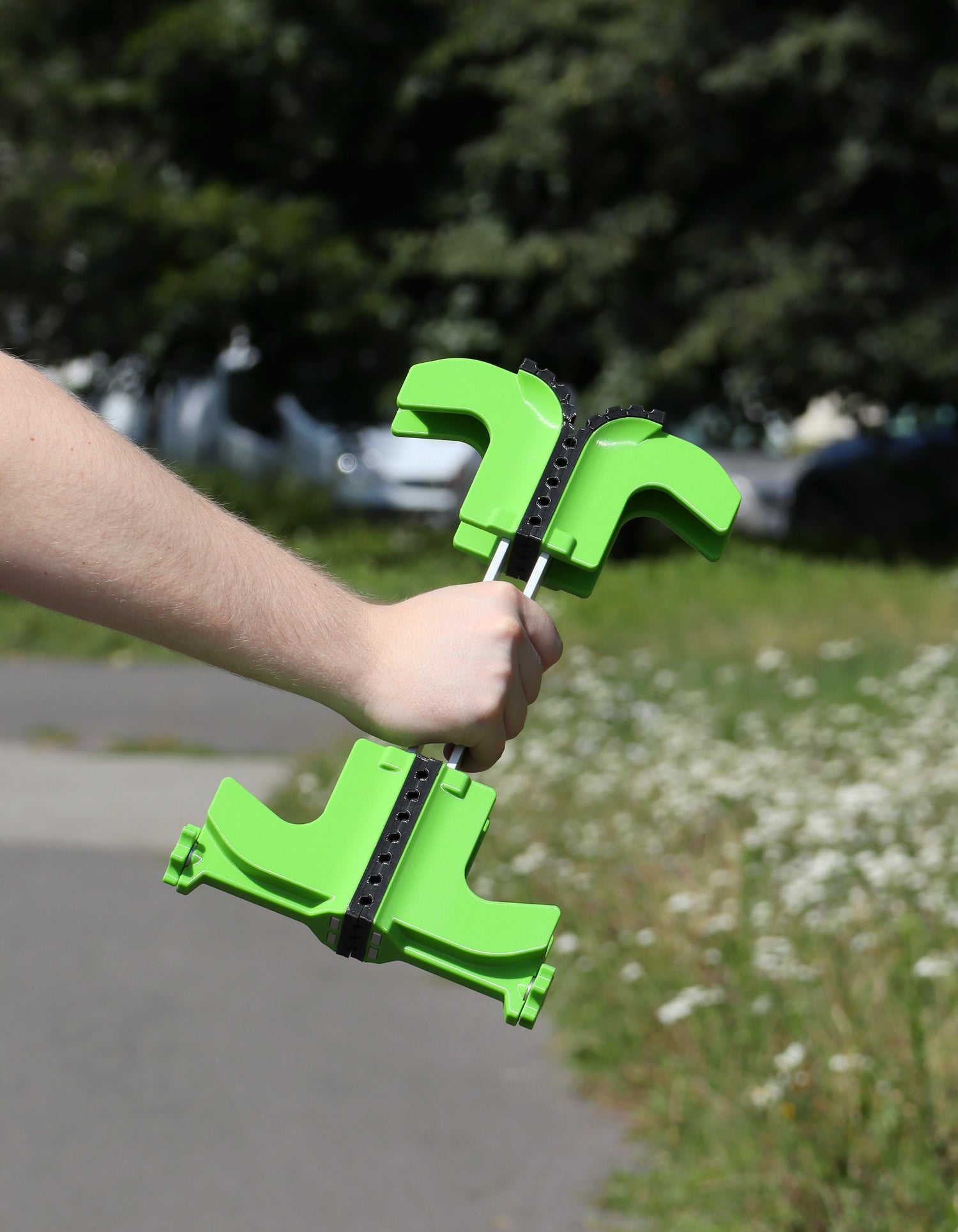 WheelsInShoes Guards can be comfortably held at the center of mass.