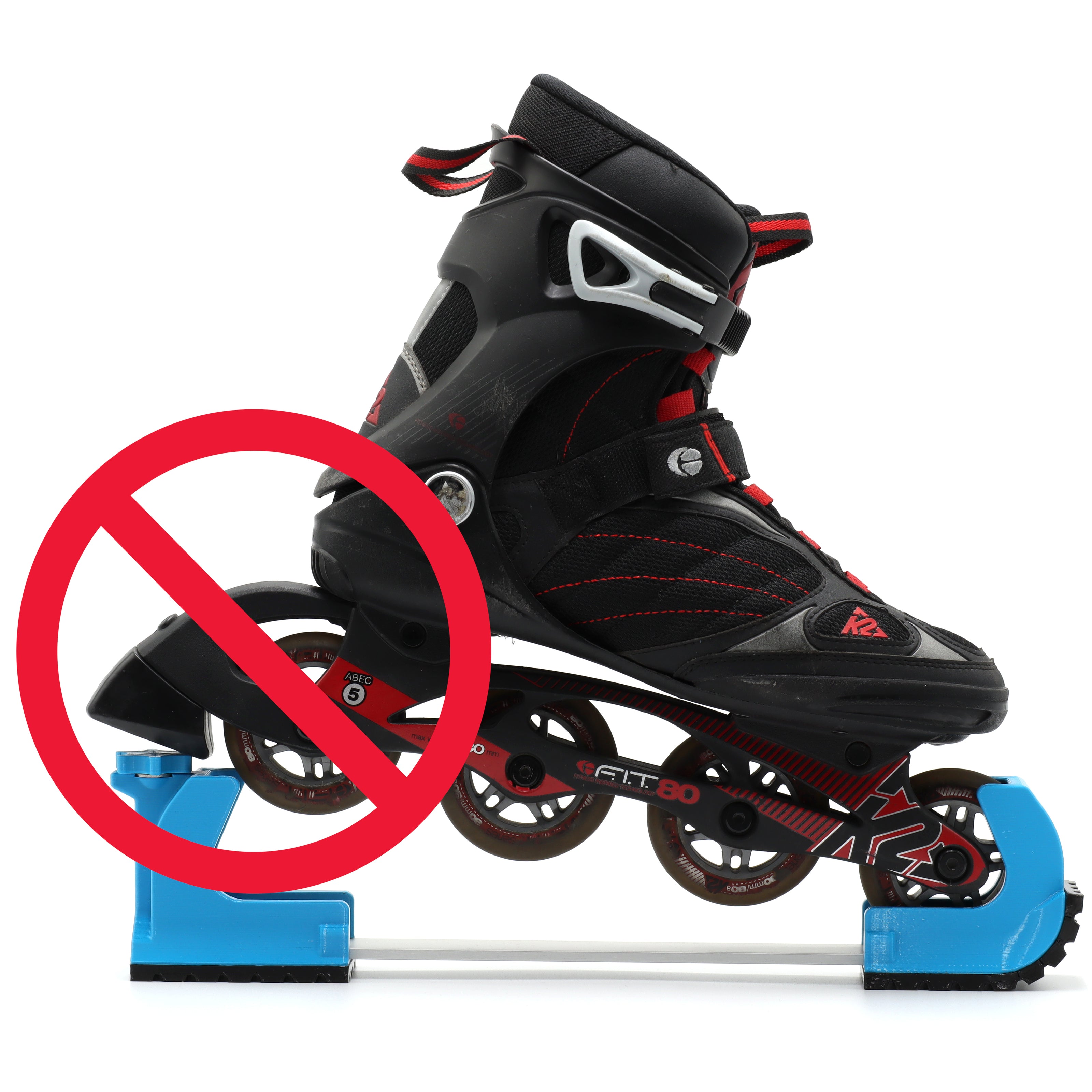 Wheel housings that grab outside wheels of inline skates have "L" shape. This allows them to push wheels into the aluminium base.
